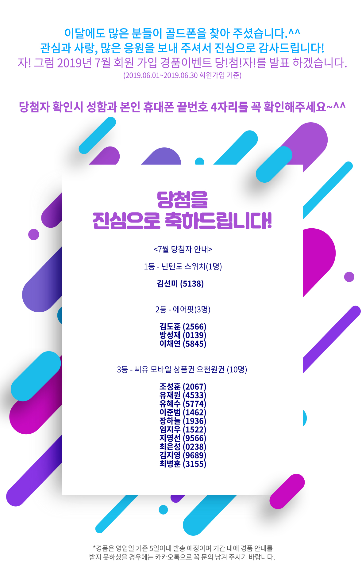 | 2019 ½Å±Ô°¡ÀÔ À̺¥Æ® [7¿ù ´ç÷ÀÚ ¹ßÇ¥!] |