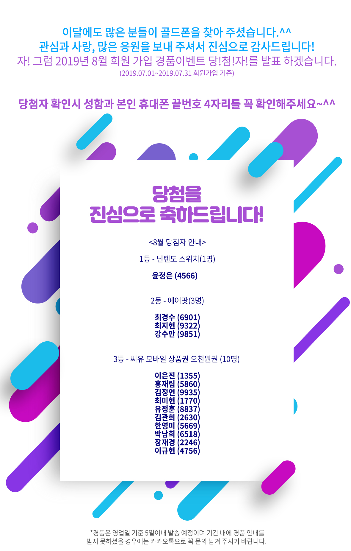 | 2019 ½Å±Ô°¡ÀÔ À̺¥Æ® [8¿ù ´ç÷ÀÚ ¹ßÇ¥!] |