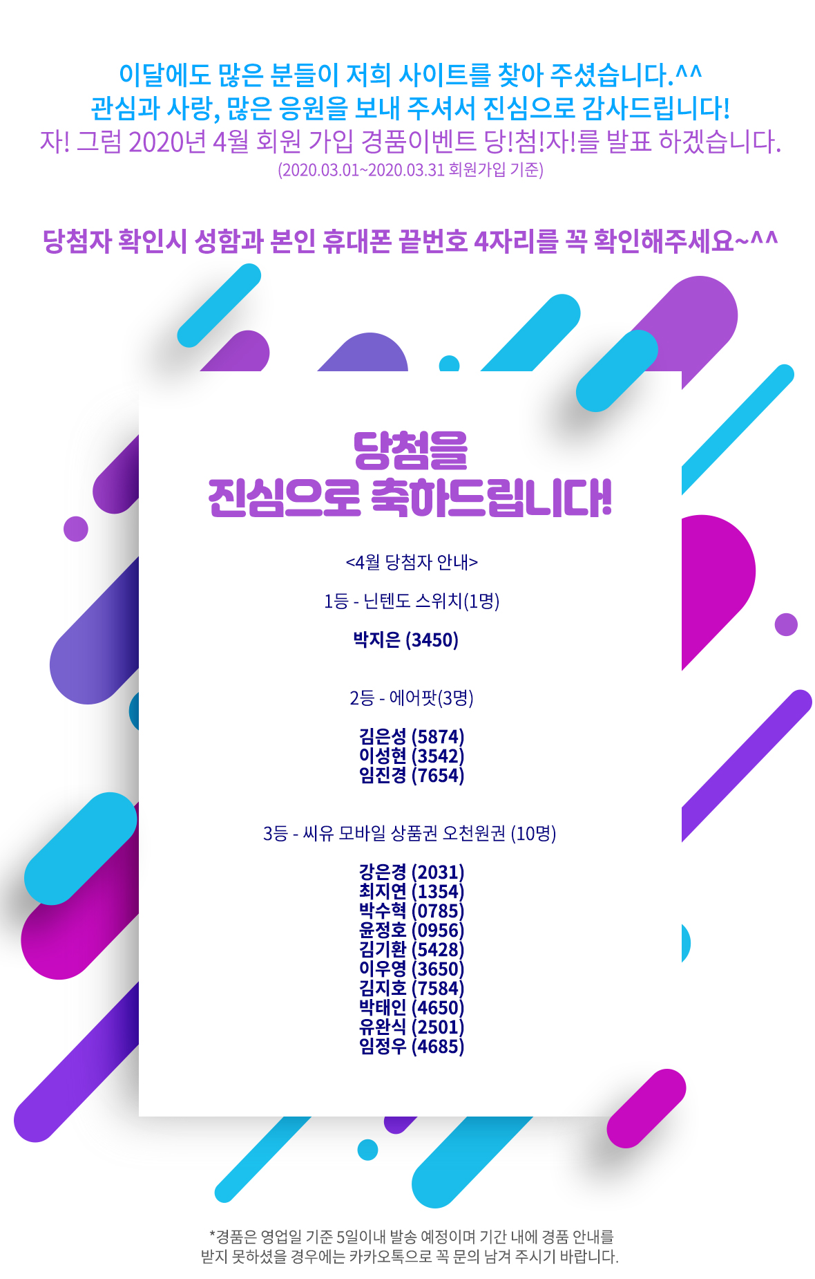 | 2020 ½Å±Ô°¡ÀÔ À̺¥Æ® [4¿ù ´ç÷ÀÚ ¹ßÇ¥!] |