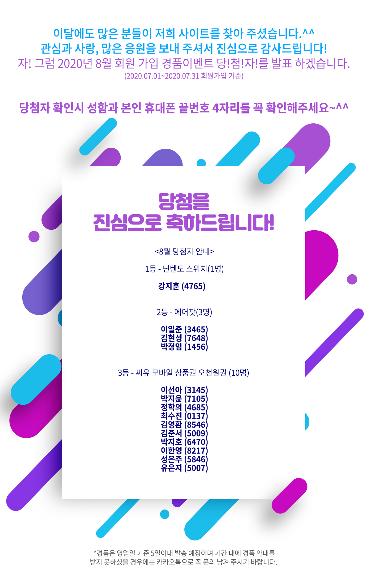 | 2020 ½Å±Ô°¡ÀÔ À̺¥Æ® [8¿ù ´ç÷ÀÚ ¹ßÇ¥!] |