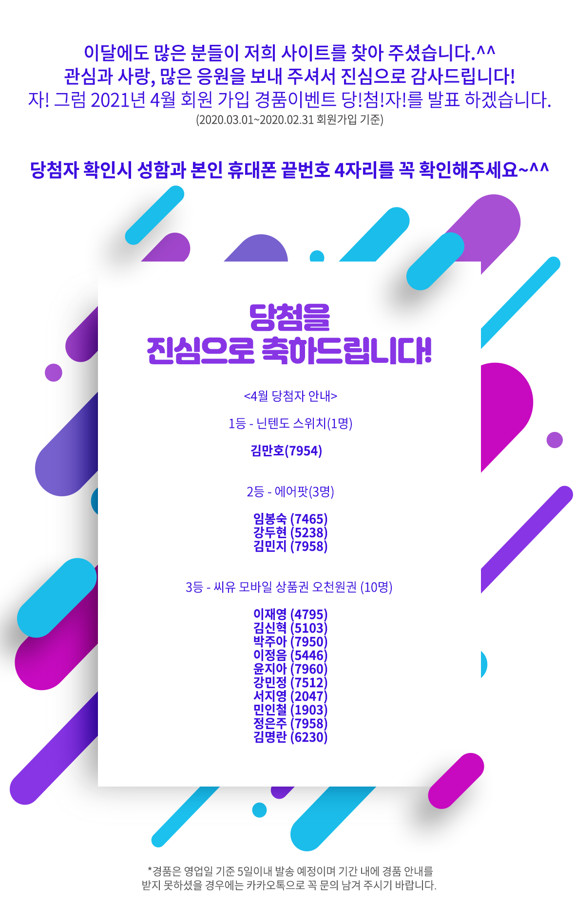 | 2021 ½Å±Ô°¡ÀÔ À̺¥Æ® [4¿ù ´ç÷ÀÚ ¹ßÇ¥!] |
